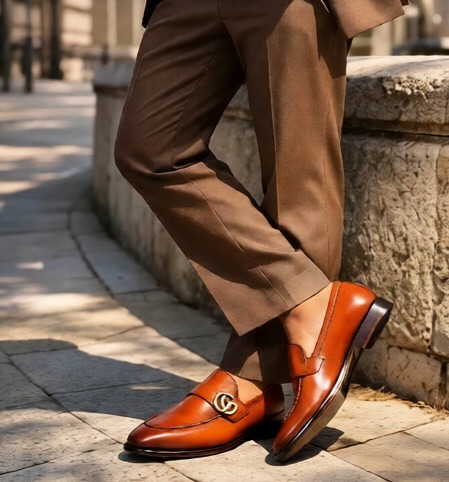 Crafted Leather Mens Designer Classic Luxury Tan Patina Leather Moccasin Loafers Dress Shoes