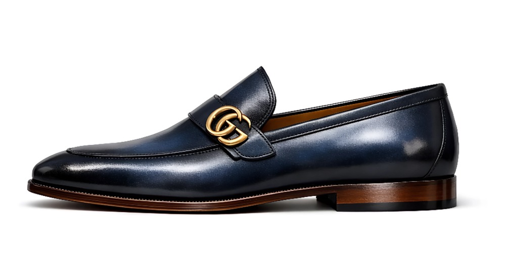 Crafted Leather Mens Designer Classic Luxury Sapphire Patina Leather Moccasin Loafers Dress Shoes