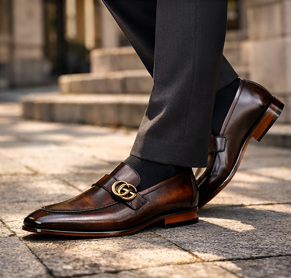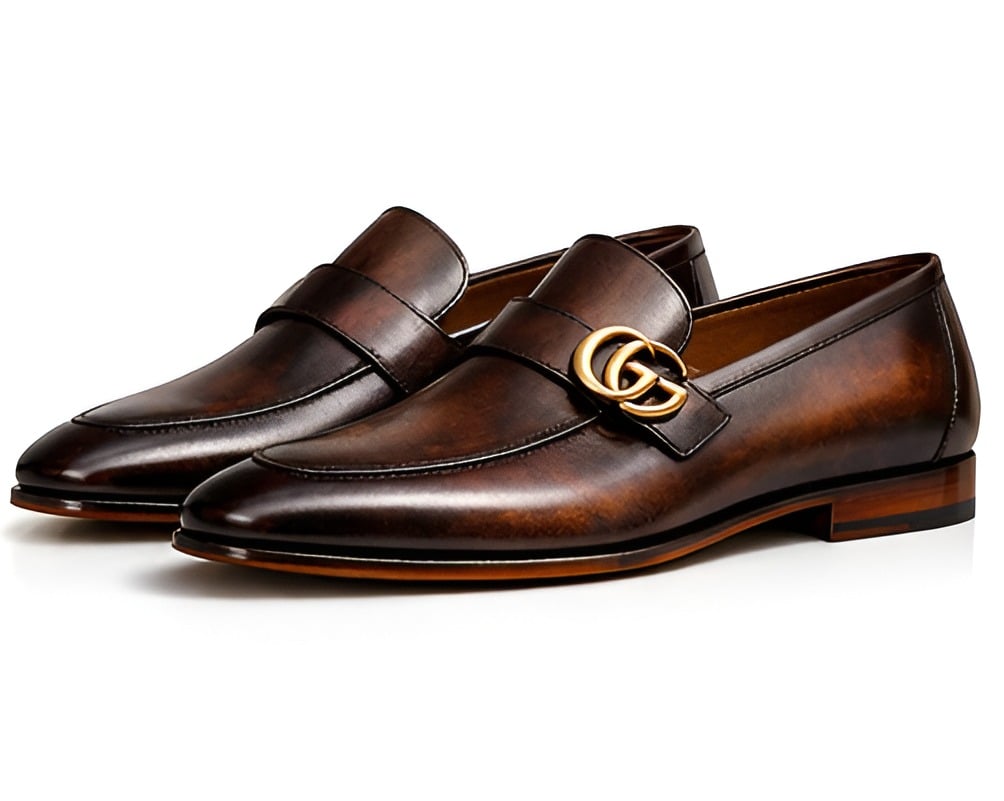 Crafted Leather Mens Designer Classic Luxury High Patina Leather Moccasin Loafers Dress Shoes