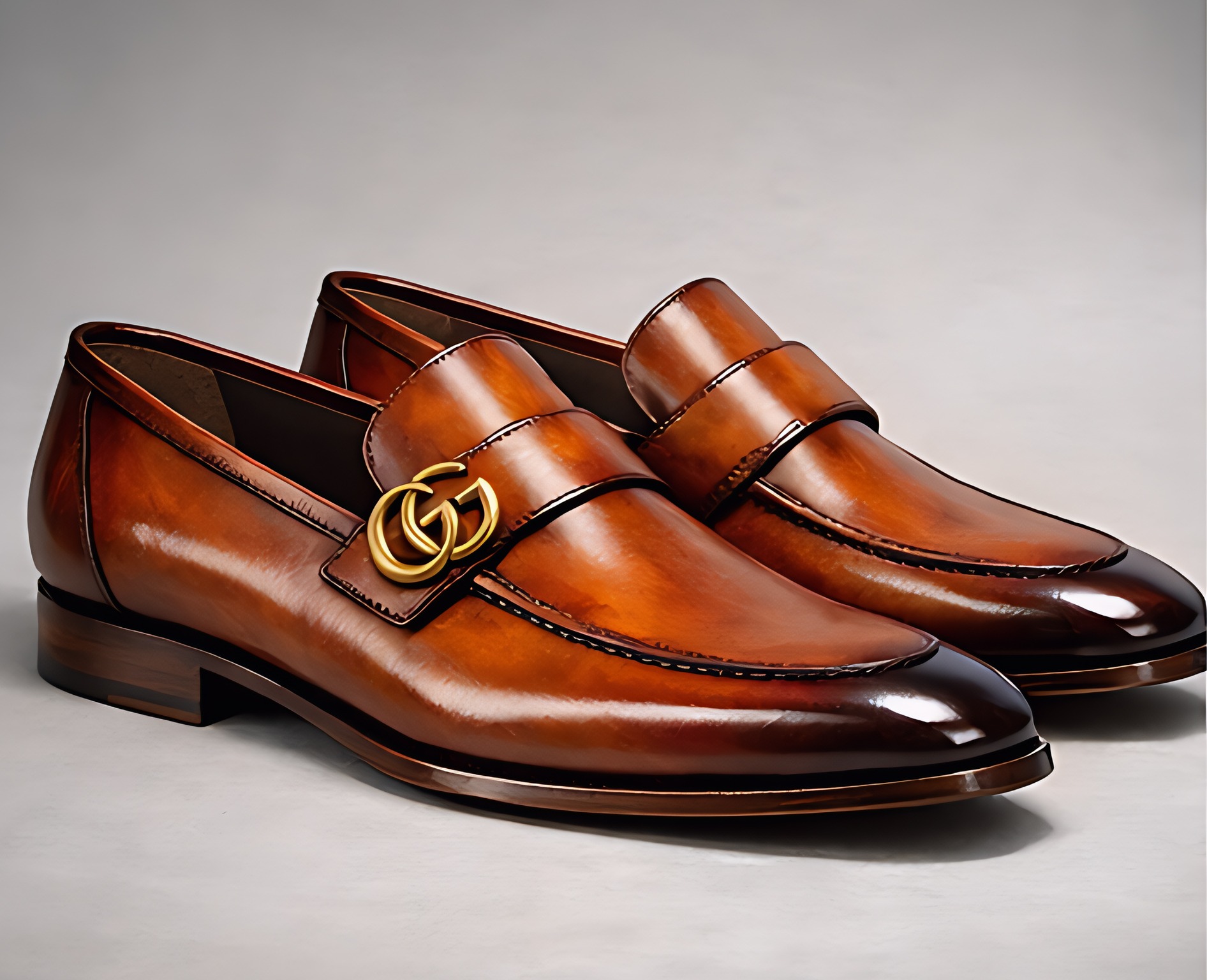 Crafted Leather Mens Designer Classic Luxury Brown Shaded Leather Moccasin Loafers Dress Shoes