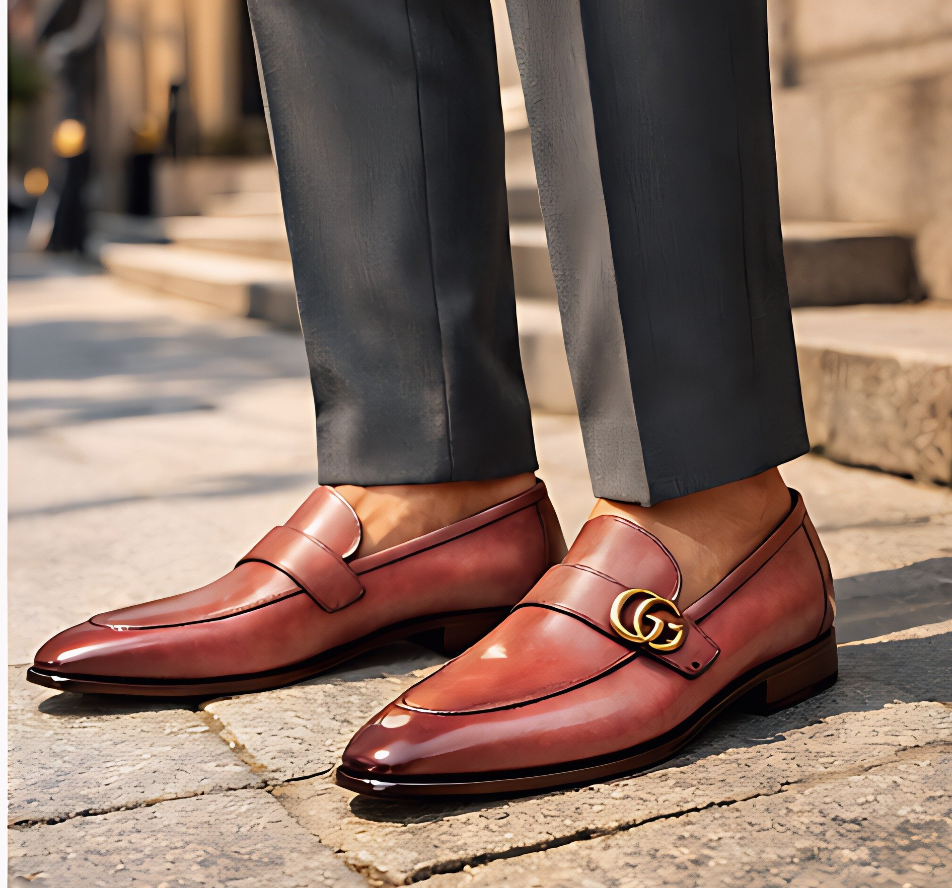 Crafted Leather Mens Designer Classic Luxury Pink Leather Moccasin Loafers Dress Shoes