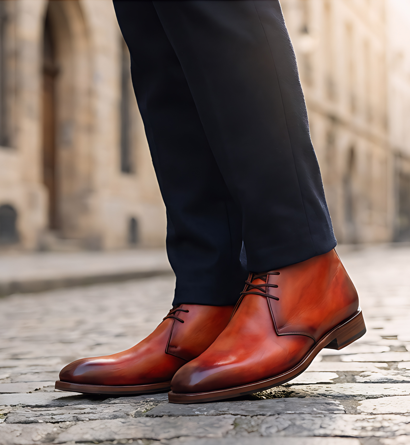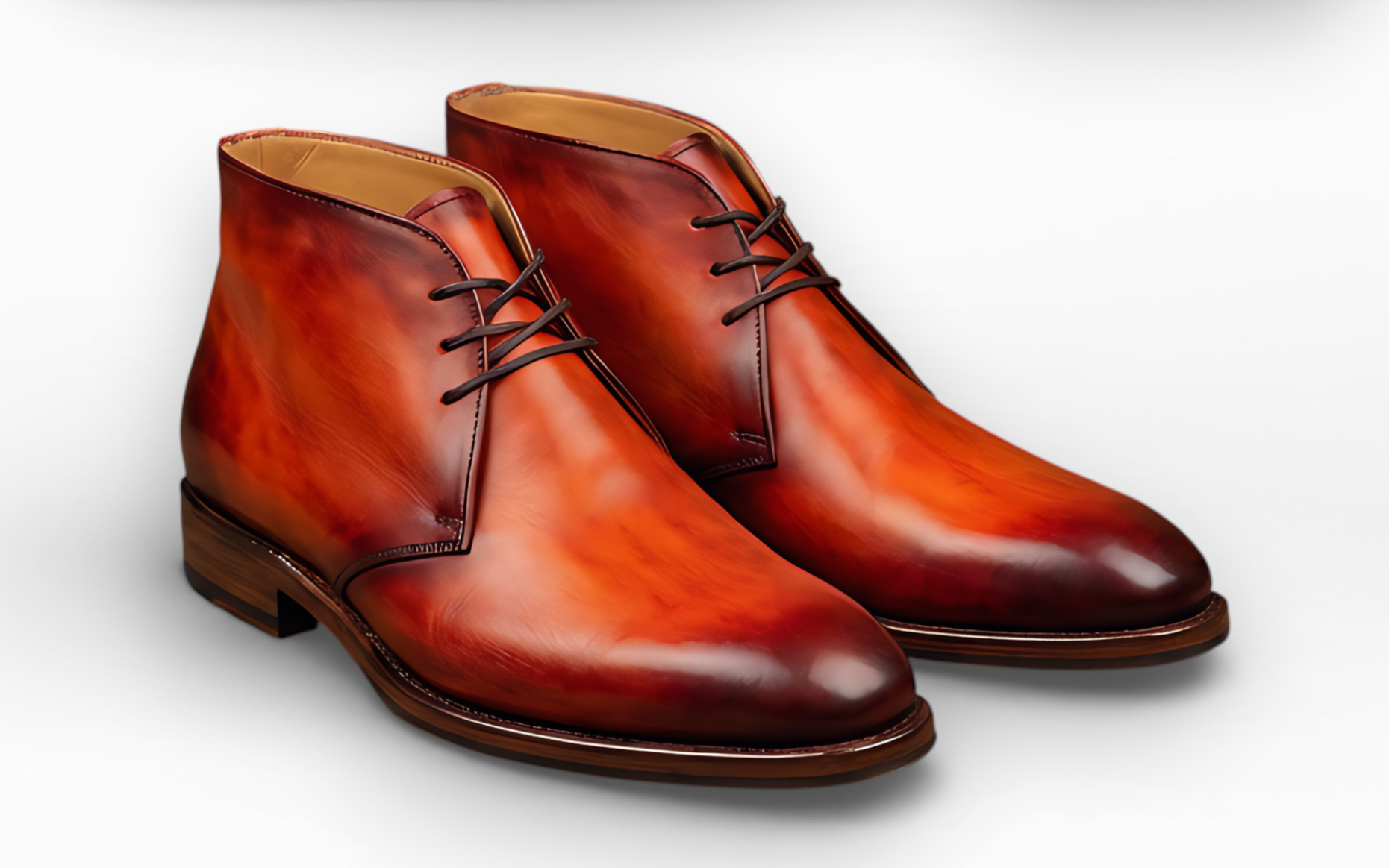 Crafted Leather Mens Designer Classic Luxury Orange Red Patina Leather Chukka Boot