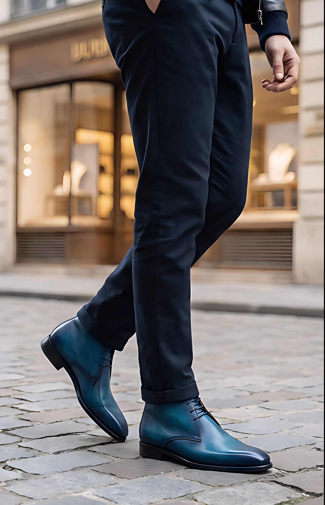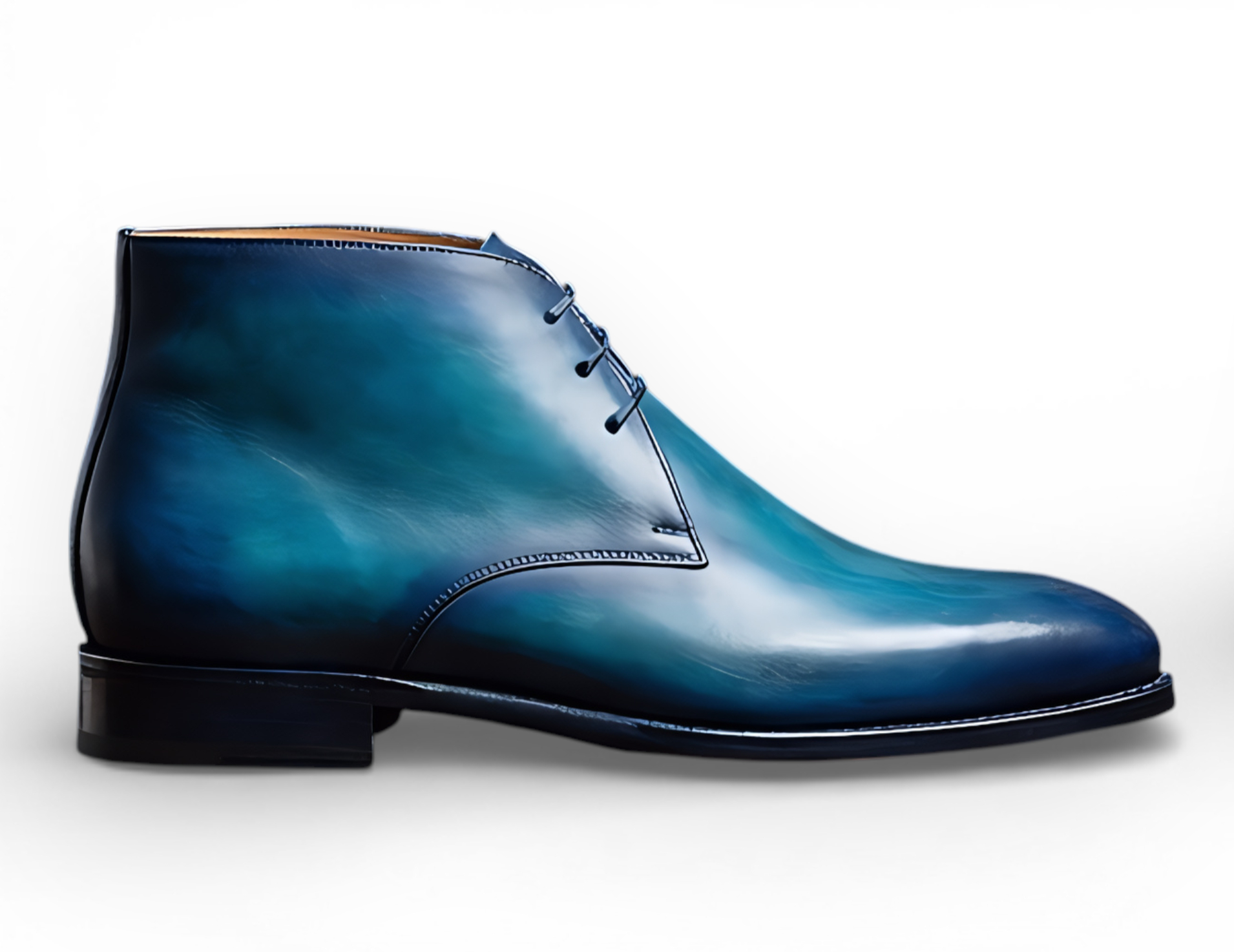Crafted Leather Mens Designer Classic Luxury Blue Patina Leather Chukka Boot