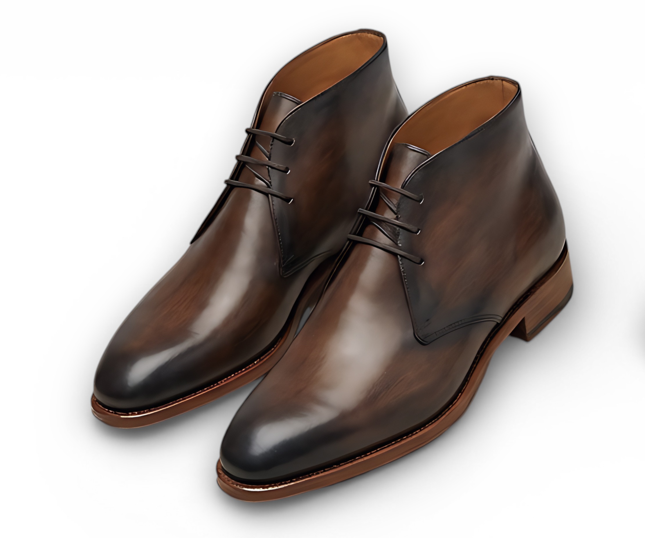 Crafted Leather Mens Designer Classic Luxury Brown Shaded Patina Leather Chukka Boot